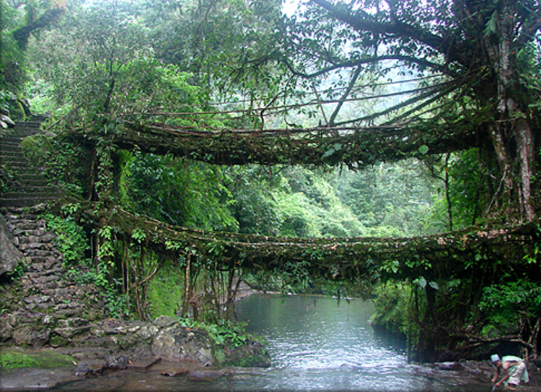 The Living Root Bridges of Meghalaya—a bridge made of tree roots that only gets stronger with time and use!