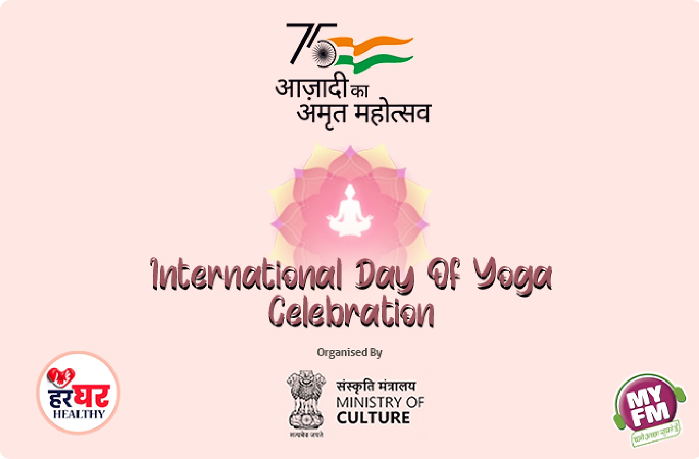 As part of the Azadi Ka Amrit Mahotsav, the Ministry of Culture and MY FM joined hands to present "HAR GHAR HEALTHY" – an initiative promoting good health among all Indians. In the week leading up to International Yoga Day on June 21, 2023, MY FM organized yoga activities across 19 cities in Rajasthan, Maharashtra, Madhya Pradesh, Gujarat, Punjab, Haryana, and Chhattisgarh.